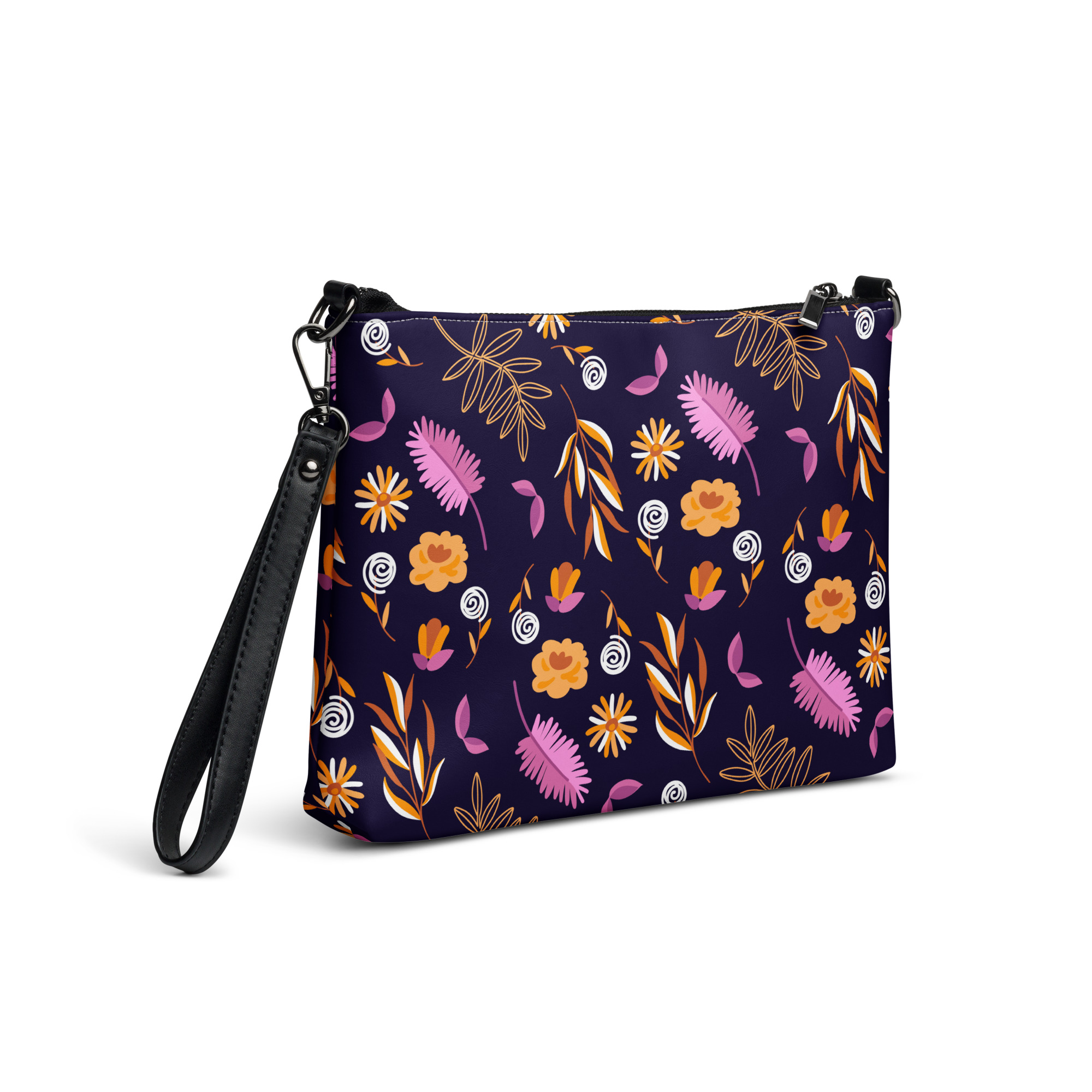 Keep your style on point and your hands free with our versatile crossbody bag. It’s made of premium faux leather and features dark gray hardware. Thanks to the zip-top closure and multiple inside pockets, you can keep your essentials secure and organized. Transform this crossbody bag with removable wrist and shoulder straps to style it for day-to-night looks.